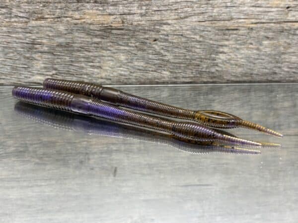 Black Label Custom Soft Plastics – Hollow Point Fat 6″ – Twisted Green Pumpkin Purple 10ct